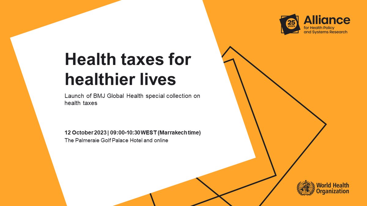 BMJ Global Health ha publicado una serie de artículos de investigación sobre los impuestos sanitarios en el número de octubre de 2023 titulado WHO: Health Taxes apoyado por la Alianza para la Investigación en Políticas y Sistemas de Salud en colaboración con los Departamentos de la OMS y el Grupo de Trabajo Interinstitucional sobre Impuestos Sanitarios.