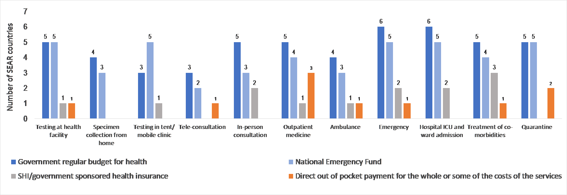Selon les personnes interrogées, les services COVID-19 ont été largement financés par les budgets gouvernementaux (à la fois réguliers et d’urgence) ainsi que par des ressources provenant de programmes d’assurance maladie publique tels que