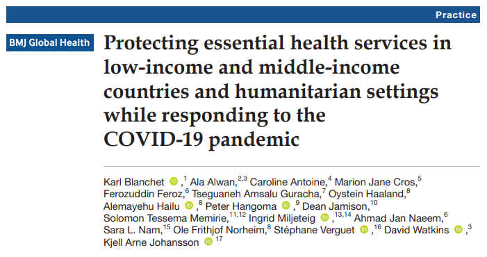 Защита основных медицинских услуг в странах с низким и средним уровнем дохода и гуманитарных ситуациях при реагировании на пандемию COVID-19.